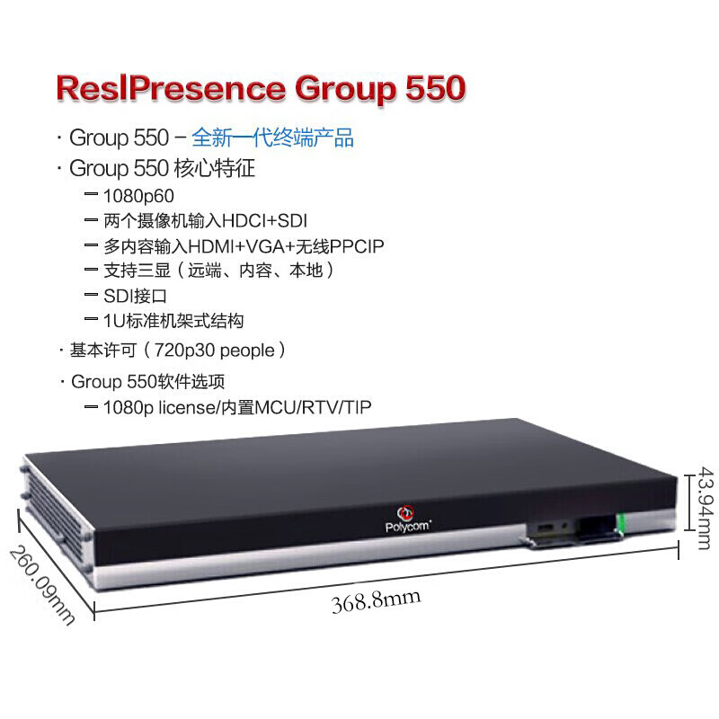 宝利通Polycom RealPresence Group 550 广泛适用于会议室和其它各种协作式环境,丰富的接口使其可以满足各种大、中型会议室的集成应用。新一代性能强大及简捷的用户界面,为用户带来无与伦比的应用体验,广泛的互操作性以及业界更低的总拥有成本深受管理者的青睐。